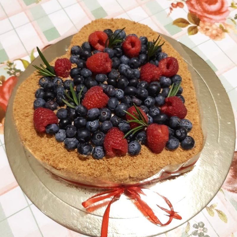 Классический русский торт, который покоряет насыщенным медовым ароматом и нежной многослойной структурой. Тонкие медовые коржи чередуются с бархатистым сметанным (или заварным) кремом, пропитываются и становятся удивительно мягкими. Характерная лёгкая карамельная нотка и приятная сладость делают его любимым десертом для семейных чаепитий и праздничных столов. Состав: мёд, яйца куриные, сахар, пшеничная мука высшего сорта, сливочное масло (не менее 82 % жирности), сода пищевая, соль морская, сметана (20–25 % жирности) / или ингредиенты для заварного крема (яйца, молоко, сахар, мука/крахмал, сливочное масло, ванильный экстракт).